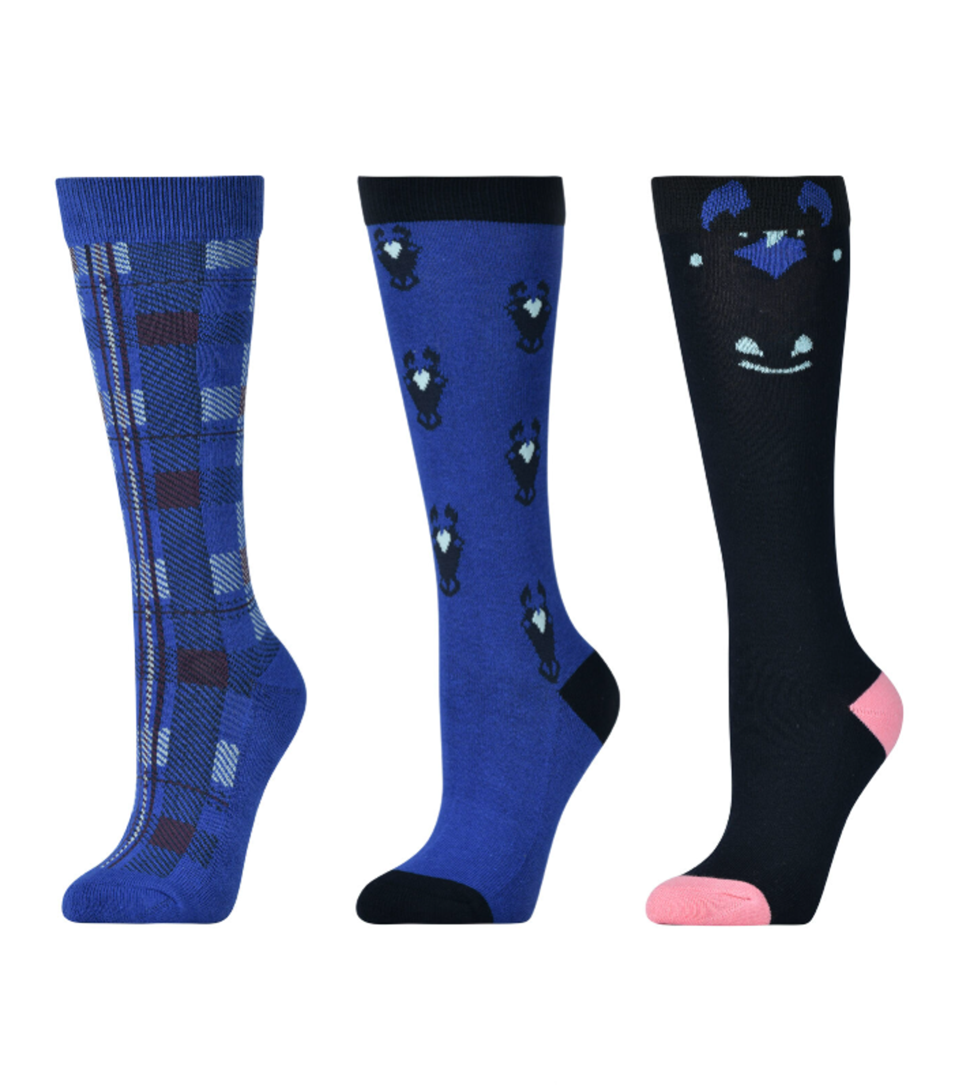 Add some fun and colour to every child's riding outfit with the Dublin Kids 3 Pack Socks, these packs of high length socks add colour and comfort to any outfit, made from a naturally breathable stretch cotton, your child's feet are sure to stay comfortable all day long. These socks come in packs of 3 pairs of socks in a range of colours and assorted designs.