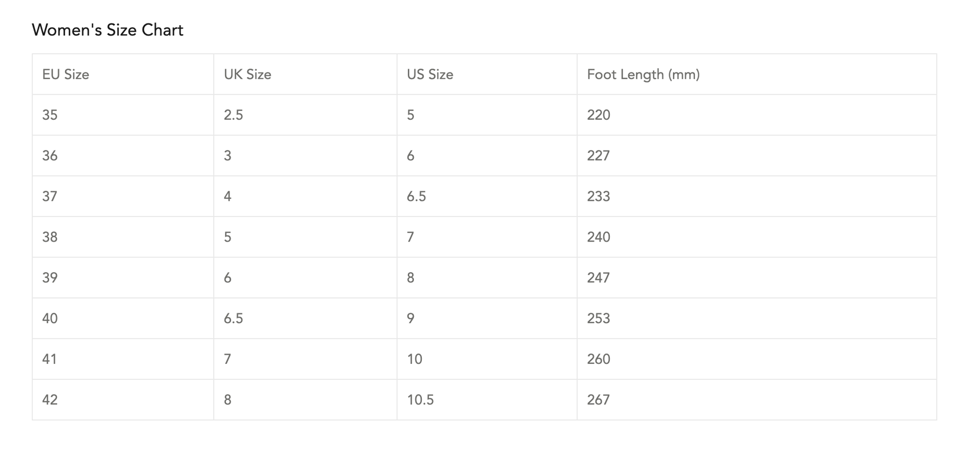 Sizing Information