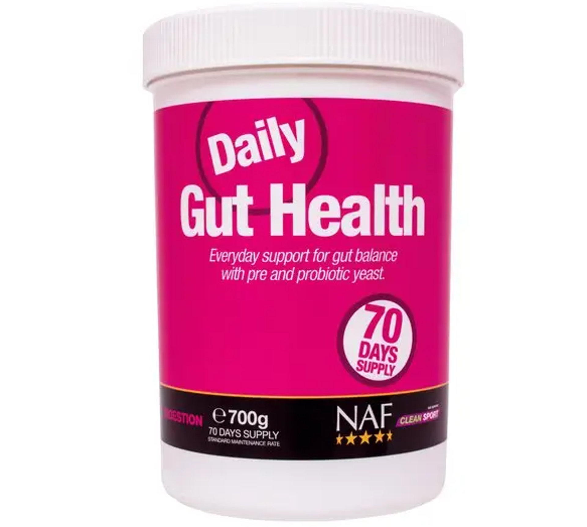NAF Daily Gut Health supplement provides your horse with a blend of prebiotics and probiotic yeast to help keep the horses digestive tract healthy.
