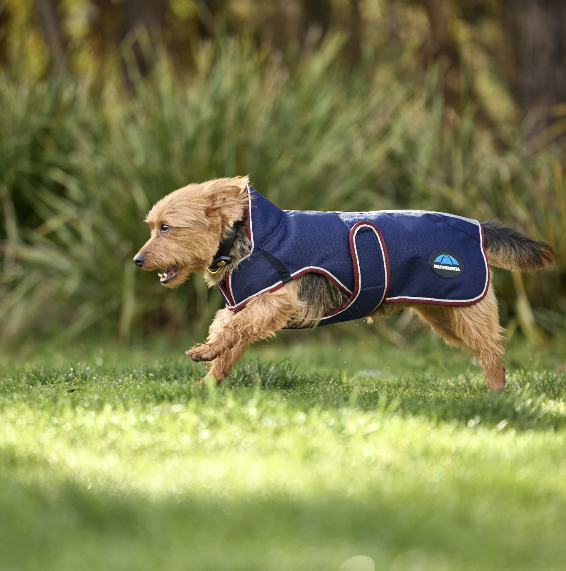Question(s) asked regarding Weathebeeta ComFiTec Premier Deluxe Waterproof Dog Coat Navy/Burgundy