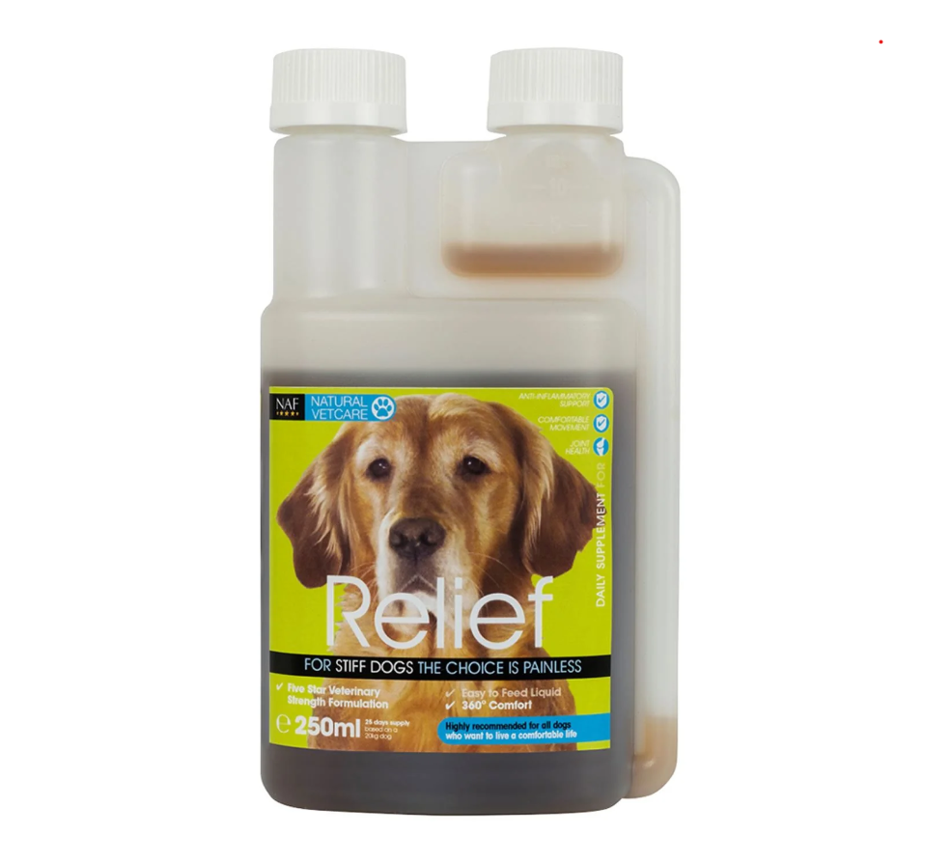 The NVC Relief Liquid helps to upport your dog's joint comfort and digestion. It has a blend of natural herbs such as Rosemary, Ginger and Milk Thistle.