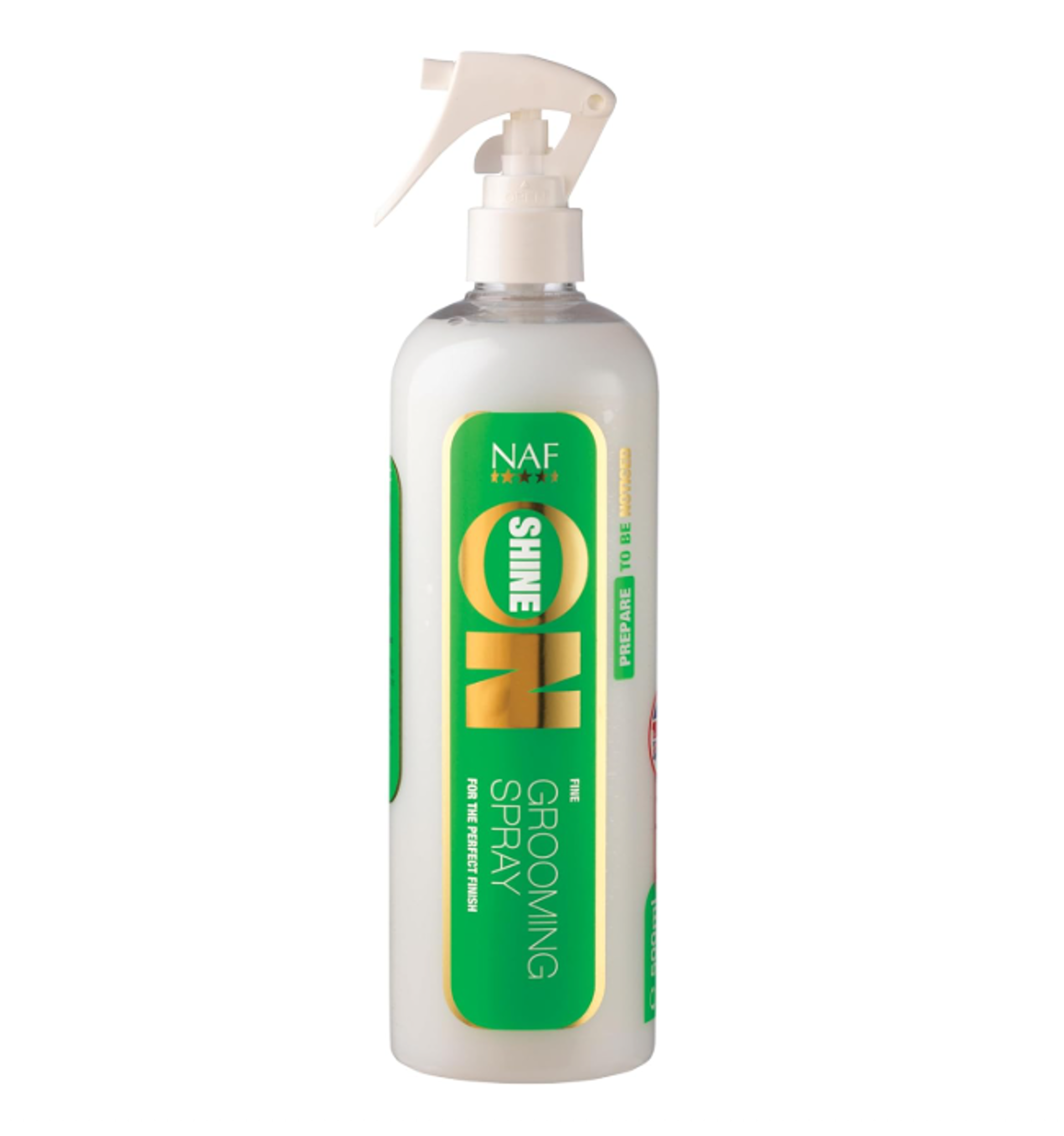 NAF Shine on is a perfct product to use if you are want a instant high-gloss finish on the horses coat, mane and tail. Perfect for detangling and grooming!